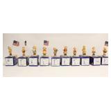 Large collection of dolls and collectible figurines from a local collector. 500+ dolls, Madame Alexander, Effabee, Shirley Temople, Gin dolls, Hummel dolls, Goebal, and others, many of the dolls are in original box and in new condition, most dolls will be sold in group lots. 300+ Hummel figurines, Hummel tea set, Hummel clocks, bells, plates, including large and rare pieces, many of the Hummels have original boxes, and also most the Hummels will be sold in group lots. American brilliant cut crystals, vintage windup toys, and more. Rare 18th century French/American Grandfather clock. Collection of rosewood furniture, including slant front desk, chest of drawers, rare large rosewood framed mirror, several cubic rosewood chest/cabinet, unusual rosewood chest on chest, fine Chinese rosewood and burl walnut chest/cabinet, rosewood and burl walnut jewelry chest and more. A fine coromendal 4 panel room divider with fine mother of pearl and bone overlay depicting war scene, several sets of Chinese rosewood nest tables. Collection of antique and 20th century Chinese porcelain pieces from Norco estate, a massive early 20th century palace famille rose porcelain vase painted with fairy tale scene, several large Chinese porcelain sculpture of deity, and an important Chinese antique blue and white porcelain sculpture depicting Lohan catching a jumping fish. Chinese water color and calligraphy, including two frame water colors by Chinese artist Fang Zhao Ran. Pair South Asia silver candle holder, and a very fancy South Asia silver center piece in repose design to depict Buddism scene. Chinese bronze sculptures, including gilt examples, Archaic style bronze vessels, very fancy bronze censor and more. Fine estate jewelry, including Victorian jewelry, diamond rings, and a large 14k y/g pendent with center a brilliant blue topaz weight approx.. 26.5 ct, and accented by over 2.0 ct excellent quality diamonds (H/VS or better), & more |