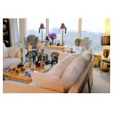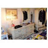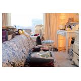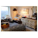 Living Room: C. Jere Brass and Copper Wall Sculpture, Two White Damask Sofas, Angelo Cappelini Marble Top Coffee Table, Side Table, Vintage Marwal Statue, Modern Black Modern Nesting Tables, Brass Ginger Jar, Chines Climbing Children Jar, Black Lacquer Asian Panel, Chinese Cork Scene, Chinese Painted Accent Table Pair, Chinese Figurines Pair, Drexel Upholstered Armchairs, Drexel Chinoisorie Ottoman, Bronze Jere Balloon Bronze Sculpture , Harris Marcus Furniture Single Dining Chair, Black Laquer 4 Panel Japanese Screen, Painted Iron and Glass Display Etagere, Three Carnival Glass Vases, Brass Garden Stool Brass planter on Stand Pair, Painted Chinese Dragon/Dog Statue Pair, Two Chinese Figurines On Stand On Wooden Stand, Asian Influenced Large Pot, Italian Marble Top Console Table, Chinese Painted Jar , Spanish Aitana Glass Vase with Glazed Stopper, Crystal Floor Lamp, Three Locking Asian-Inspired Media Storage Pieces, Tension Lamp Angel & Crystal, Hof Bauer Glass Lamborghini on Wood Stand, Malaysian Cocktail Table with Drink Stand, Framed Asian Fabric Art, Glass Display Cabinet , Waterford and Other Assorted Crystal, Selection Of Audio Equipment Including Marantz and Panasonic, Lenox Interlude China Set, Waterford Lismore Glasses, Russian Tea Cups, Vintage Lalique Les Femmes Glass Set Of Two, Waterford Kells Standing Cross, Large Selection Of Decorative Items and much more. Dining Room: Set Of Four Drexel Heritage Chinoiserie Dining Chairs, Beveled Glass with Brass Accents Dining Table, Brass Detailed Plant Stand, Indian Leather Wrapped Elephant Statue, Taiwanese Accent Table, Black Lacquer Shell Chinese Panel Pair, Large Gilt Wood Mirror, Large Black Lacquer Shell Peacock Asian Panel Art, Metal and Glass Bar Cart, Native American Pottery Signed, Joseph Rodriguez Raku Pottery, Small Black Accent Table, Jere-Inspired Copper Sculpture, Lladro Spanish Porcelain Ballerina, Mary and Jesus with Gothic Wood Carved Frame, Lenox Interlude China Set, Russian Pair of Covered Tea Cups and Saucers, Miscellaneous Glassware and much more. Kitchen: Daffodil Plate and Saucer Set, Nice Selection Of Small Appliances Including: NutriBullet Blender Brentwood Conventional Oven, Hamilton Beach Juicer, Sunbeam Food Processor, Ice-cream Maker, Primo Beverage Maker, Canned Foods, Baking Supplies, Mugs, Glasses, Cookie Jars, Dish Rags, Vintage Red Coleman Cooler and Matching Thermos and much more. Bedroom One: Cane Back Upholstered Armchair, Large Marble Top Dresser, Large Collection Of High End Clothing Including St. John, Anne Klein, Adrienne Landau, Ferragamo Shoes, Black Suede/Leather Cape w/Black Fox Trim Fur Coat, Silver Fox Fling, Black Fox Fling, Black Fox Headband, Black Sheared Beaver Jacket w/Black Fox Trimmed Hood, King Size Mattress, Wood Headboard, White Floral Upholstered Chairs, Blue Farmhouse Footstool, Large Selection Of Decorative Items, Underwriter Glass and Metal Floor Lamp, Large Selection Of Purses, Perfumes, Huge Selection Of Costume Jewelry, Crystal Lamps, Large Selection Of Shoes, High End Head-wear/Hats, Sunglasses, Hickory King Bed, White Lacquer Asian Art Panels, 1950's Brass Pedestal Rotary Phone and much more. Bedroom Two: Robert Clark Black Detroit Painting, Robert W Clark III Painting Gratiot Ave, Robert Clark Wonder Bread Painting, Robert Clark Wonder Bread Painting, Robert Clark Fox Theater Painting. Black IKEA Dresser, CD player, Candles, Mirror TV Unit, Black Rocking Chair, Crystal Lamp, Hollywood Regency Plaster Lamp, Brass Floor Lamp, Huge Selection Of High End Clothing Including St. Johns, Snake Skin Jacket, Dresses, Large Hat Collection, Hollywood Regency Plaster Lamp Crystal Lamp, Purses, Men's Clothes Suits, Jackets, and much more.