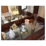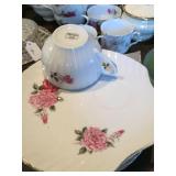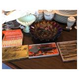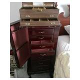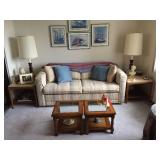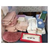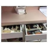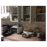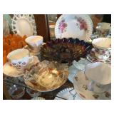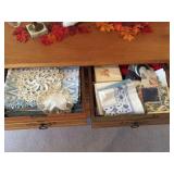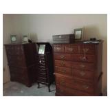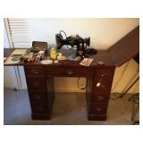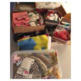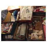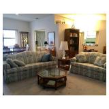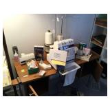 Two bedroom sets, two living room sets, kitchen table and chairs, dining set with lighted china cabinet. Broyhill, Lane, teak MCM tables, desks. Electronic organ and music. Fully stocked kitchen. Sewing center with machines, fabric, trims, thread, craft kits, quilt kits, accessories, lamps, tables, books and instructions. Full bath linens, towels. Vintage embroidered linens. Dining linens. Curio cabinet. China, porcelain, fine collectibles, crystal, vases. Fine and fashion jewelry.