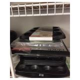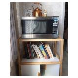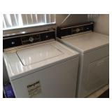 Washer and dryer, upright freezer, microwave.