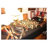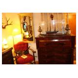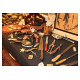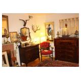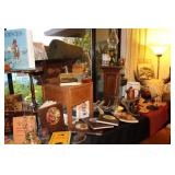 Some of what you can expect to shop from will be a HUGE lantern collection, antique ice cream scoops and primitive kitchenware, knives knives knives, kitchen pottery, glass and pots as well as pans, fire king and corning-ware, vintage records both lps and 45s, books, vintage wool blankets and linens, trunks, men's clothing, old bottles, karastan carpets as well as others runners included, canes, swords, (it should be noted the family is opting the donate the masonic sword you see in the photos on the dresser, we apologize that it will not be in our sale) wall hanger antique guns (over 100 years old and do NOT work) black powder items, artwork, Remington art and prints, games, tools, holiday, quilts, furs, horns, antique furniture and yard and garden.