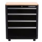 Husky 33 in. H x 28 in. W x 18 in. D 4 Drawer Steel Garage Base Cabinet 4 lockable drawers for safe tool organization Each drawer holds up to 50 lbs. of evenly distributed weight Casters not included. Item does have key. Not In Box. Retail $199.00 (RT61) |