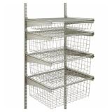 ClosetMaid ShelfTrack 4-Drawer Kit in Nickel Assembled size: 27 in. H x 21 in. W x 17 in. D Perfect for hats and gloves in the entryway Ventilation allows air circulation for freshness Previously Opened, Factory Box, Come to Preview to see item, Retail $85.00 |