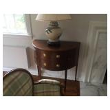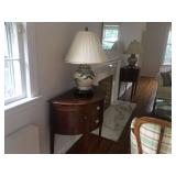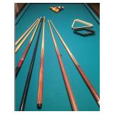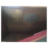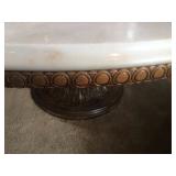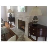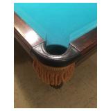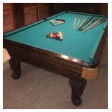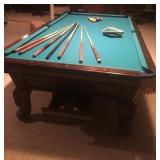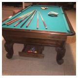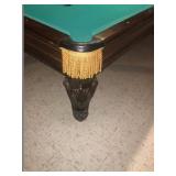 Items located in Scarsdale, NY. Items include a marble coffee table; an antique pool table; a vintage Gotlieb bowling Pin-Up, pinball machine; a pair of slipper chairs and figurative nouveau style marble table; chandeliers; a marble pedestal and mirror; antique Royal Crown Derby, scalloped edged, Imari style plates; furniture, and more.