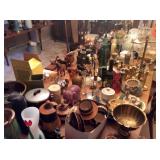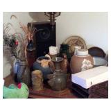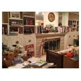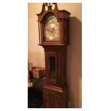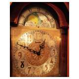 ROOM DECOR AND ACCESSORIES Walnut Daneker grandfather clock from the Amana Colonies Lamps, Floor lamps, baskets, sculptures, brass pieces Large book collection and many other items too numerous to mention.