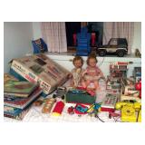 ART, VINTAGE CLOTHING, VINTAGE TOYS Gloria Melgaard's ceramic sculptures, partial sculpture pieces, kiln, supplies Large assortment of framed artwork and original pieces Closets full of vintage clothing, shoes, coats Vintage toys, boxed games, dolls