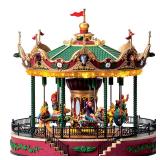 LIC LIMITED Carnival Village, Jungle Carousel. Detailed carvings of jungle animals replace the traditional carousel horse, with riders circling around the mirrored center atop lions, turtles, and zebras! Retail packaging, previously opened. *Note on box says lion is broken. Please inspect at preview. Retail: $99.99 |