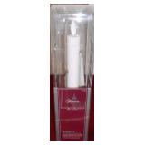 Trimming Traditions Air Motion LED Candle 9 1/2" white candle with a gold base. Flickering light bulb, plastic "flame" moves to give a realistic look - yellow flame color - perfectly replicates the random flicker and ambient glow of a traditional burning candle. Requires batteries. Item in opened retail package. Retail: $7.99 |