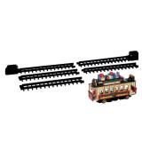 Battery-operated train circles decorated Christmas tree. Santa rides in engine with children and puppy as passengers. 3 AA size batteries are required Batteries not included. Retail packaging, previously opened. Please inspect at preview. Retail: $39.99 |