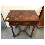 100 Inlaid table One drawer in lead table made by Theodore Alexander. 28 x 28 x18