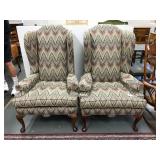 33 2arm chairs Two matching upholstered arm chairs, made by Hancock and Moore.