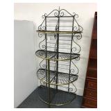 69 Bakers rack Metal and brass Bakers rack, good and sturdy. 84 inches tall by 40 inches wide by 22 inches deep.