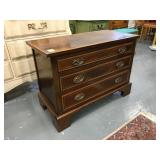 50 Mahogany low chest Mahogany low chest with inlaid drawers. 24 inches tall by 34 inches long by 17 inches deep. Talk show some discoloration.