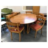 44 Dining table & chairs Pine dining table with 6 chairs, chairs marked Milling Road. Table is 29 inches tall x 74 inches long and 56 inches wide. Comes with one 20 inch leaf.