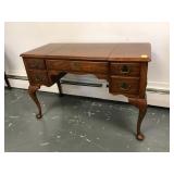 24 Mahogany desk Mahogany serpentine front desk on ball and Talon feet. 42 inches tall by 37 inches wide by 19 inches tall.