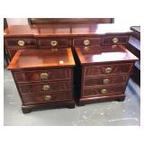97 End table Pair of mahogany and tables, each has four drawers. 26 inches tall by 16 x 21. Made by JB vVan Sciver