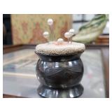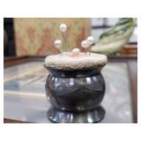 9 - BLACK AMERICANA GLAZED CERAMIC MAMMY STRING HOLDER