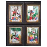 15 - ANTIQUE TURN OF THE CENTURY GERMAN REVERSE PAINTED SEASONS, ALL PAINTED ON THE GLASS