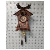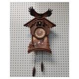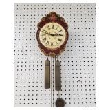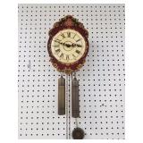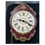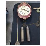 22 - VTG WEIGHT DRIVEN WALL CLOCK W RED FACE WORKS