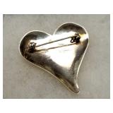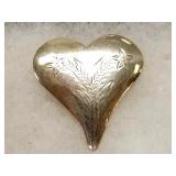 42 - LARGE STERLING SILVER ENGRAVED HEART PIN / BROOCH