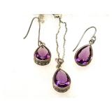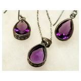 46 - 3PC STERLING SILVER EARRINGS AND NECKLACE AMETHYST SET