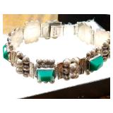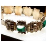50 - STERLING SILVER GREEN STONE LARGE HEAVY BRACELET