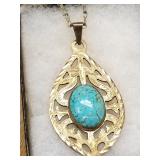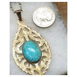 54 - STERLING SILVER LARGE TURQUOISE STONE / PENDANT