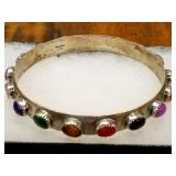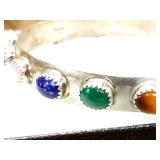 56 - LB SIGNED NAVAJO LG HEAVY STERLING SILVER BRACELET W MANY GEMSTONES LES BAKER
