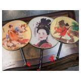 304 - FRAMED VTG PAINTED SILK SCARF SIGNED KAPIL