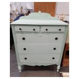 244 - ANTIQUE 5 DRAWER DRESSER WITH TOP TRIM PIECE INCLUDED