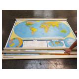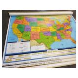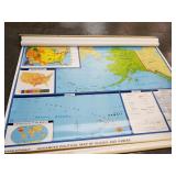 251 - VINTAGE SCHOOL STYLE ROLL UP TEACHERS WALL MAP SEVERAL MAPS IN ONE