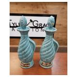 261 - PAIR OF VINTAGE BONDED BEAD POTTERY DECANTERS