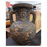 2 - EARLY 20C JAPANESE DOUBLE HANDLED VASE HIGH RELIEF