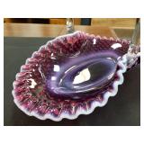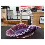 18 - RUFFLED HOBNAIL AMETHYST HANDLED GLASS BASKET