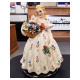 20 - VTG ZSX NOVE ITALIAN FIGURINE GIRL W BASKET OF FLOWERS SMALL REPAIR TO NECK