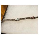 48 - STERLING SILVER & MARCASITE GEMSTONE BRACELET