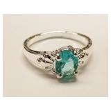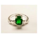 65 - STERLING SILVER LIGHT GREEN STONE RING