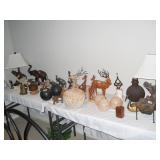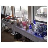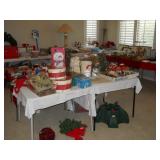 Furniture includes - Down Feather Sofa & Chairs, (2) Nice Leather Chairs, Sleeper Sofa, Wood/Iron Dining Table & Chairs, (4) Barstools, King & Queen Beds with Custom Bedding, Flat Screen TV's, Grandfather Clock, High End Stereo Equipment & Monitor Audio Speakers, Area Rugs, W/D, Refrigerator, Nice Lamps & Accessories, Silverplate Tea Set & Flatware, Royal Doulton Figures, Tiffany Candlesticks, Copper Coffee Pots, 100+pcs. Fiesta, Waterford, Spode Christmas Dishes, Cut Glass, Nippon, 14K, Sterling & Costume Jewelry, Collectibles, Ladies Chicos Clothing, Designer Handbags, Christmas Décor & Linens, Deer & Elk Mounts, Patio Furniture.