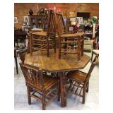 Antique dinning table with pull outs on each end to make room for the 8 chairs
