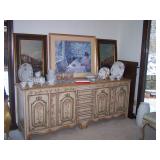 Contents to include: stunning hand painted king bedroom set with dreesser/mirror, chest, lingere chest, nite stand, vintage pink marble top coffee and end tables, desks, lamps, large oil painting, file cabinets, sofa, country French cane back/seat chairs, Hollywood Regency chairs, dining table/chairs hand painted buffet, kitchen table/chairs, console piano, much house hold misc, glassware, Sterling flatware for 12, ladies clothing size 8/16, fur coats, craft supplies, and much, much more! More info and photos as the sale gets closer!