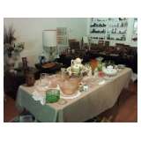 SATURDAY.....1/2 PRICE DAY !!!!!!! This Home is still PACKED !!!!! This home is literally PACKED with all sorts of Furniture (some antique), French Provincial, 1000's of collectables, NEW items still in boxes, several Longaberger Baskets, Longaberberger Serving Pieces, Johnson Bros. "The Friendly Village" (108 Pieces) China, Hall Pottery, McCoy Pottery, Original Artwork, Lots of pretty colored depression glassware, Candlewick Glassware, vintage lighting, NICE Teak Wood Office Furniture, rooms full of BOOKS, Washing machine, NEW Kitchen Small appliances, cook books, Advertising Collectables, Toll House Cookie Jar, "Dan the Dog" ALPO cookie/treat jar, VINTAGE PYREX and other VINTAGE KITCHEN Misc., Lots of cast iron, antique shadow boxes, 100's of Nativity pieces, 50+ Snowglobes, tons of cookware, lots of collectable Barbies, Beer Steins, tools, Garden/Yard art animals, purses, vintage Christmas, and a PACKED garage we have yet to go through, etc..... Pictures are being updated each night this week...... See Ya'll in Arlington ! Jerry & Stephanie