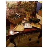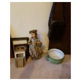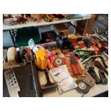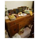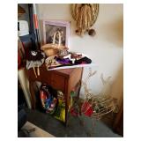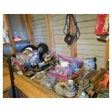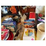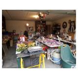 Very full home with a garage, and separate building. Lots of garden statuary and cast iron decor. Furniture, full kitchen, Gary& Davis vintage car headlights, possibly from a Cadillac. Records, vintage 1980's clothing, Christmas, and MORE! |