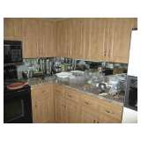 Leather sofa with recliners, Lazyboy recliner, loveseat, pair of chairs, desk, bar, glass dining table, rattan chairs, stacked tables, pair twin beds with custom headboards, Kirby vacuum cleaner, lamps, refrigerator, pictures, art supplies, books, clothes, linens, plants, kitchenware, garage items. |