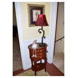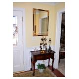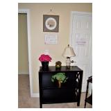 Foyer/Hallway: Rug, Art, Mirror, Lamps, Side Tables, Umbrella Stand, and More.