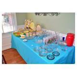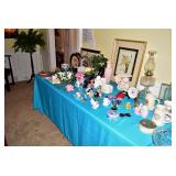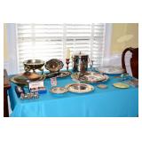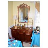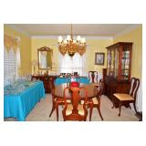 Dining Room: Mahogany Table and 6 Chairs, Sideboard, China Cabinet, Baker’s Rack, Arm Chair, China, Glassware, Art, Silverplate, and More.