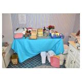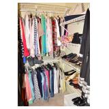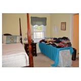 Bedroom: King Four Poster Bed, Chest of Drawers, Armoire, Sewing Table, Upholstered Chair, Nightstands, Lamps, Art, Mirror, Women’s Clothing (Size S), Women’s Shoes (Size 7-7 ½ Ferragamo, Vitelli, Stuart Weitzman, and More), Quilts, and More.