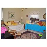 Bedroom: Twin Bed with Trundle, Media Cabinet, Bookshelf, Rocking Chair, Linens, Rug, Lamps, and More.