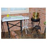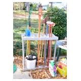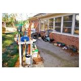 Patio: Iron Table and Chairs, Grill, Yard Tools, Plastic Cabinet, and More.