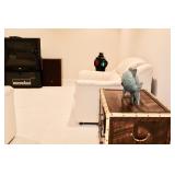 Entry: Circular Tufted Rug with Fringe, Howard Miller Grandfather Clock, Faux Floor Floral, Assortment of Vacuums including Shark and Hoover, 2 Sets of Women’s Figure Skates, Assortment of High-end Jackets, including NASCAR Jacket, Motorcycling Chaps, Red Line Motorcycle Jacket, Marc New York Leather Jacket and more. Office: Kimball Innsbruck Desk, Seiko Mahogany and Brass Desk Clock, Faux and Real Plants, Assortment of Office Supplies, Pair of Cream Leather Armchairs, 2 Janet H Anderson Numbered and Signed Prints, Paul A Essmaker Signed and Numbered Print, Detroit Steam Boat Framed Print, Nautical Lamp, Steamer Style Hexagonal Accent Table and more. Living Room: Maroon Leather La-Z-Boy Recliner, Framed Bassett Mirror Company Print, Framed Greyhound Print, Framed C. Reichert Dog Print, Framed and Beveled Mirror, Stone International End Table Pair, Coffee Table and Console Table, 2 Brass Lamps, Vizio Smart LED TV, Bose Acoustimass Subwoofer, Faux Floral Arrangements, Assortment of Books Including Detroit Books, Red Leather Armchair with Nailhead Accents, Nautical Clocks including S Smith and Son, Vintage Schatz and more. Dining Room and Butlers Pantry: Stanley Furniture Company Queen Anne Dining Set, Oneida Flatware Set, Reed and Barton Duchess of Marlborough Serving Sets, Mikasa Wedding Band China Set, Framed Victorian Hunting Party Print, Brass Champagne Bucket Stand, Framed Cooper Jockey Prints with Foil, Getzand Budweiser Steins, Pewter Mugs, Assorted Barware Including Marquis Cocktail Shaker Kitchen and Pantry: Pillar Plant Stand, Verichron Westminster Chime Wall Clock, Waterford Hanover Gold Rimmed Ice Bucket, Champagne Flutes and Wine Glasses, Assorted Formal Glassware, Assorted House Plants, Visions by Corningware Amber Glass Cookware, Many Pots and Pans, Selection of Dishes Including Johnson Brothers Regency Set, West Bend Wok, Knives Including Zwilling and Wusthof, Pyrex Glass Bakeware, Dansk Mid Century Wooden Salad Bowl, Saltón Iced Tea and Coffee Maker, Assorted Pepper Mills, Assorted Food including Spices, Hamilton Beach Roaster Oven, NSF Professional Quality Chafing Dishes In Box, Selection of Wines and more. Bedroom And Bathroom One: Conant Ball Midcentury Dresser, Vanity Dresser, Mirror and Bed Frame, Full Mattress, Framed Lapdog Print, Assorted Red Towels, Cleaning Products and more. Bedroom Two and Bathroom Two: Harbour House Dressers, Ships Wheel Mirror, Small Wooden Nightstand, Brass Bedframe, Folding Game Chairs, Paul A Essmaker Print Signed and Numbered, Assorted Medical And Bathroom Products and more. Upstairs Office: Harbour House Three Piece Corner Desk, Vegan Leather Oversized Armchair And Ottoman, Various Nautical Decor, Samsonite Suitcase, Vermont Teddy Bear and more. Master Bedroom: Blonde Wood Four Poster King Bed, Large Dresser, Circular Mirror and Two Glass and Blonde Wood End Tables, Scalloped Loveseat, Corinthian Pillar Framed Art Piece, Brass Lamps, Harley Davidson Helmet, Briefcases and Other Luggage, Leather Wallets, Collection Of High End Men’s Clothing And Accessories, Various Towels and Bed Linens, Pottery Piggy Bank, GPSMap 76, Apelco Radio, Walker and Other Mobility Gear, Mens Cowboy Boots, Remington Radial Shaver, Other Bathroom Products and more. Basement: Vegan Leather Sofa, White Leather Sofa and Loveseat Set, Craftsman Radial Arm Saw, Johnson 15 Boat Motor, Steamer Style Accent Tables, Captains Wheel Coffee Table, U.S Army Airplane Compass, Sanyo Vintage Speakers and Reciever, Car Collectables, Sports Memorabilia, Collection Of Vintage Wood and Steel Toolboxes, Selection Of Tools, Exercise Equipment, Two Vintage Railroad Lanterns/Stop-lights and much more. Garage: 2006 Cadillac DTS V8 With 78,742 Miles, Craftsman Air Compressor, Patio Table and Chairs, Two Wood and Iron Benches, Gas Jugs, Snow Blower, Gas Grill, Snow Shovels, Gardening Tools, Shelving Units, Wood Desk and Vintage Style Telephone and more.
