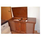 This online auction features ANTIQUE: Mission style bookcase clock; child's rocker; oak clover leaf shape occasional table; mirrored buffet. VINTAGE: Ornate '20's floor lamp and table lamps; pressed back rocker; american mantle clock; linens; Underwood typewriter; vanity items and beaded purses; 2 stereo consoles; sewing patterns; blue-painted wooden trunk; canister set; milk can; Pepsi machine. COLLECTIBLE: Navajo and Mexican blankets and lamps; glass insulators and thimbles; Cuckoo clock; salt and pepper sets; Hawaiian shirts; plates; Frankoma and Roseville pottery; oil lamps; LP's. FURNITURE: Bookcases, dining table and chairs; cedar chest, bedroom including a brass bed frame; drop leaf table and mirrored buffet, baker's rack. MUSICAL INSTRUMENTS: Storey and Clark piano and bench, drum set, acoustic guitar. STERLING: Jewelry, serving pieces and flatware. 3 singer sewing machines. Leather working tools. GLASS/CRYSTAL: Pink cups and saucers; Avon; colored; cut/pressed serving pieces; stemware. CHINA; Austrian; Noritake " Margot" service for 8. Yard and Garden and much more!